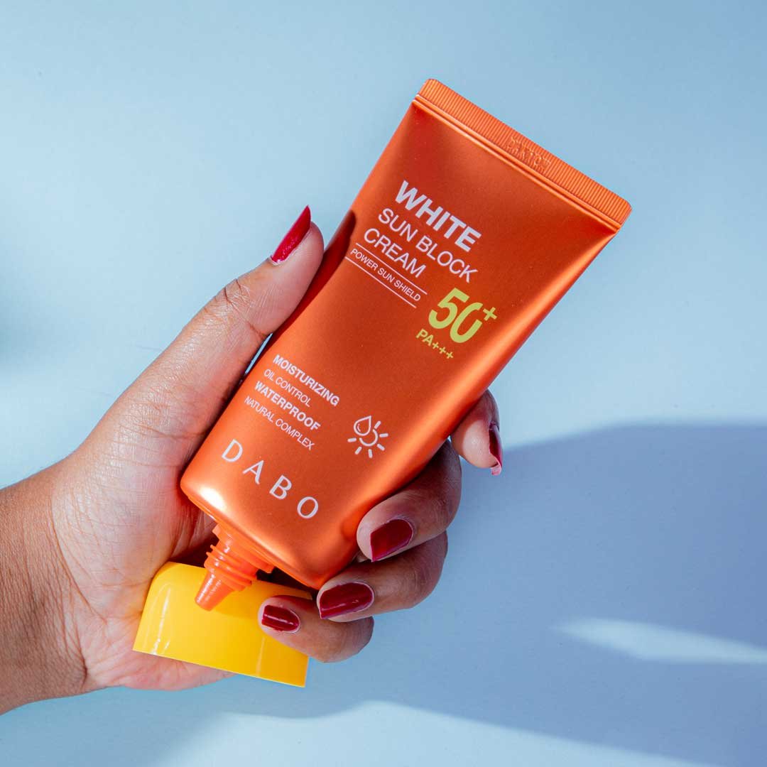 - Take an adequate amount of Dabo White Sun Block Cream.